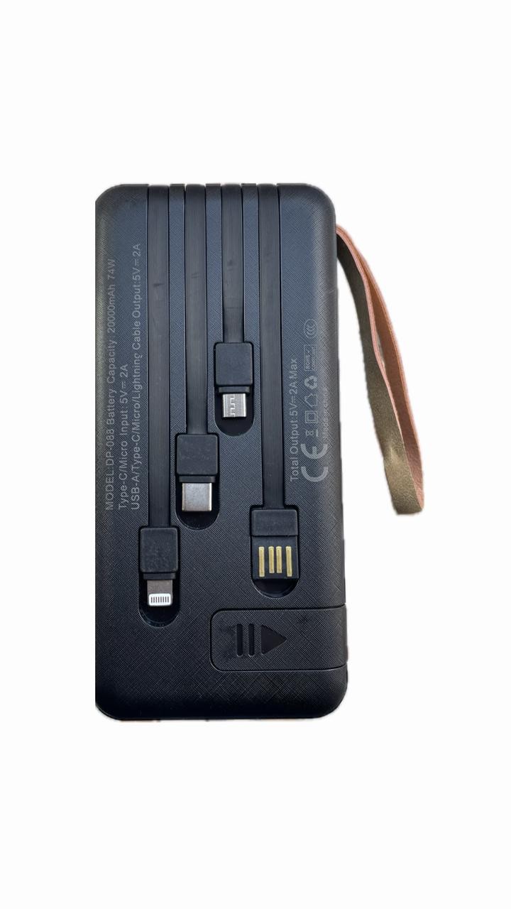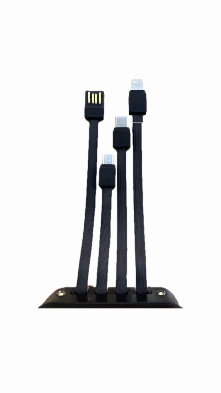 • كابلات مدمجة (4x1): يأتي مع كابلات مدمجة (Type-C وMICROو USBو Lightning) مما يلغي الحاجة لحمل كابلات خارجية.