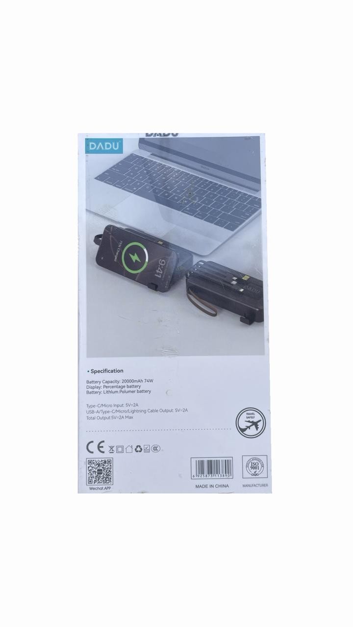 • سعة ضخمة: 20,000 مللي أمبير تكفي لشحن الأجهزة عدة مرات.