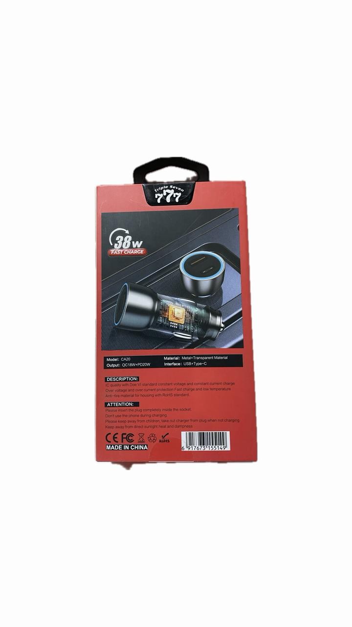 شاحن سيارة 777 CA20: 38 وات (PD + USB).