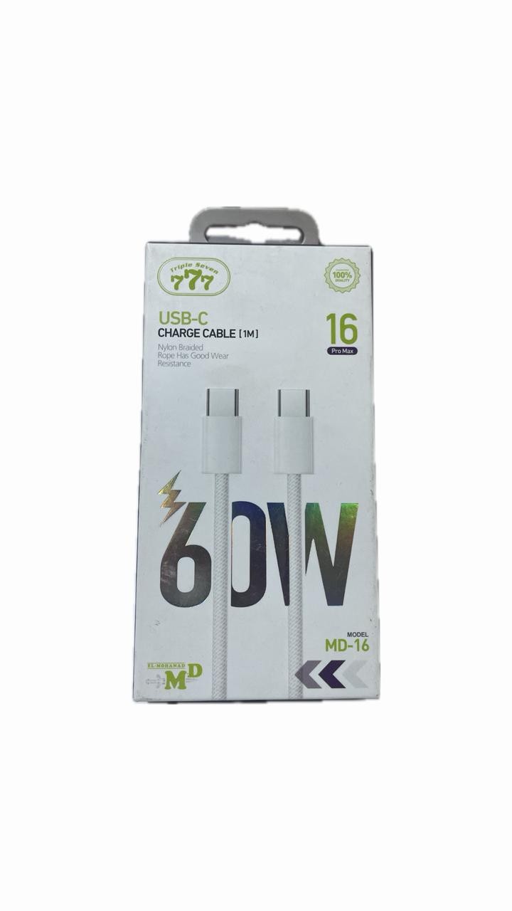 • يُعد كابل الشحن Triple Seven (777) MD-16 الحل الأمثل لشحن جميع أجهزة USB-C الحديثة بكفاءة وسرعة.