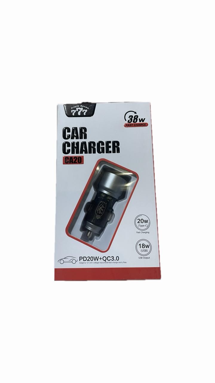 شاحن سيارة 777 CA20: 38 وات (PD + USB).
