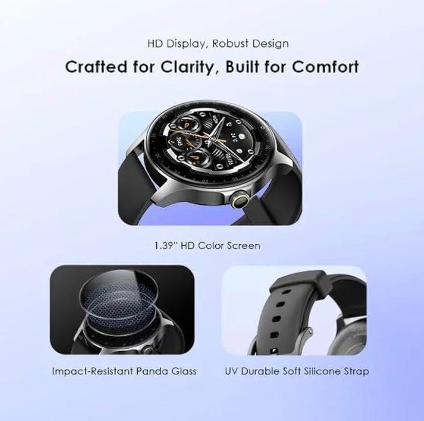 • الشاشة: شاشة TFT ملونة تعمل باللمس بالكامل بحجم 1.39 بوصة ودقة 360×360 بكسل.